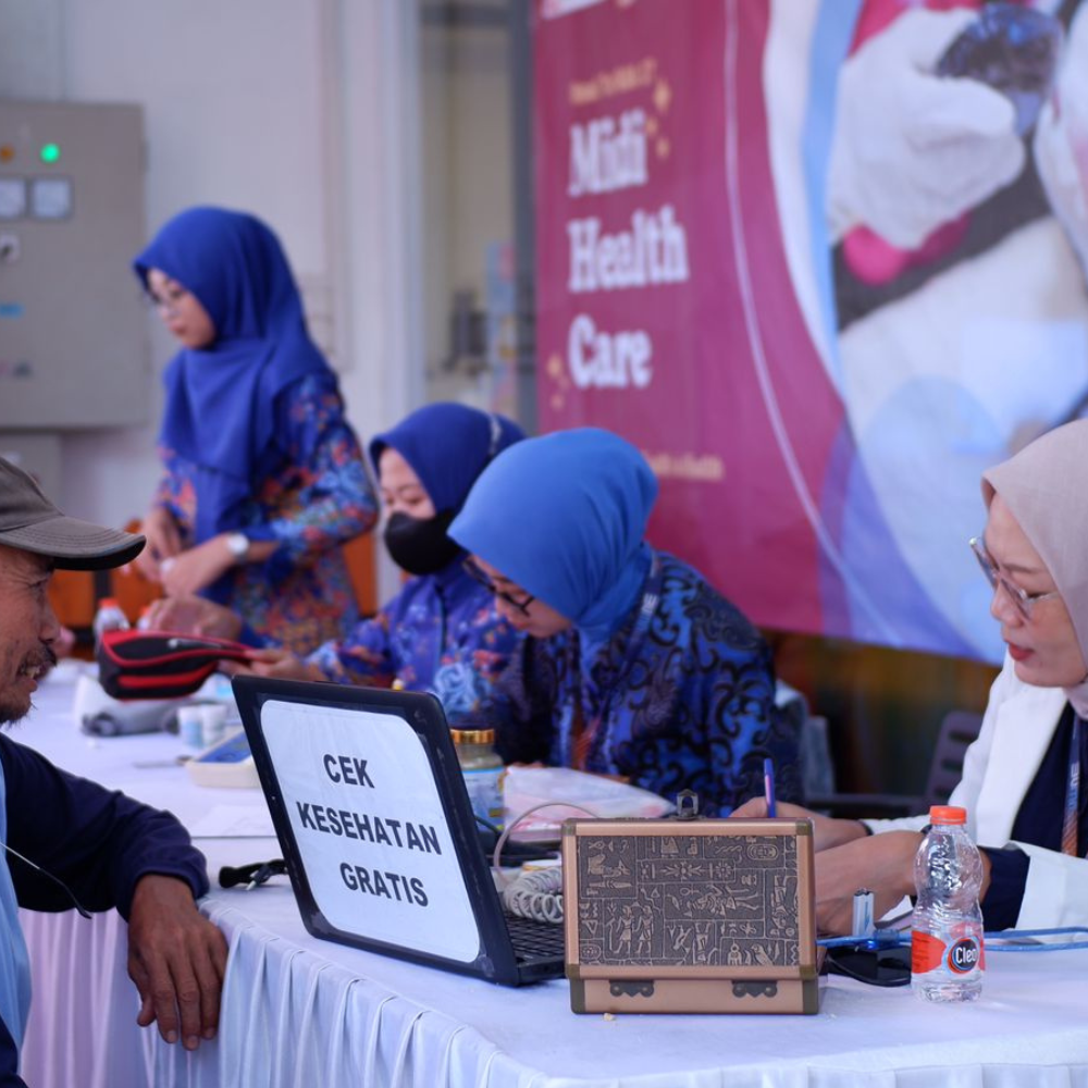 Menjelang Semarak Ulang Tahun PT Midi Utama Indonesia ke-17, Alfamidi melalui program Corporate Social Responsibility (CSR) menggelar pemeriksaan kesehatan gratis di halaman gerai Alfamidi Erlangga, Kelurahan Sukorejo, Kecamatan Ngasem, Kabupaten Kediri, Jawa Timur, Rabu (10/7/24). Pemeriksaan kesehatan ini bertujuan untuk meningkatkan kesadaran masyarakat tentang pentingnya kesehatan. Dalam pelaksanaannya, masyarakat sangat antusias