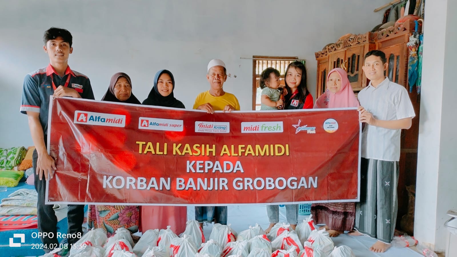Alfamidi memberikan bantuan sembako bagi korban terdampak banjir yang melanda Kabupaten Grobogan, Jawa Tengah.