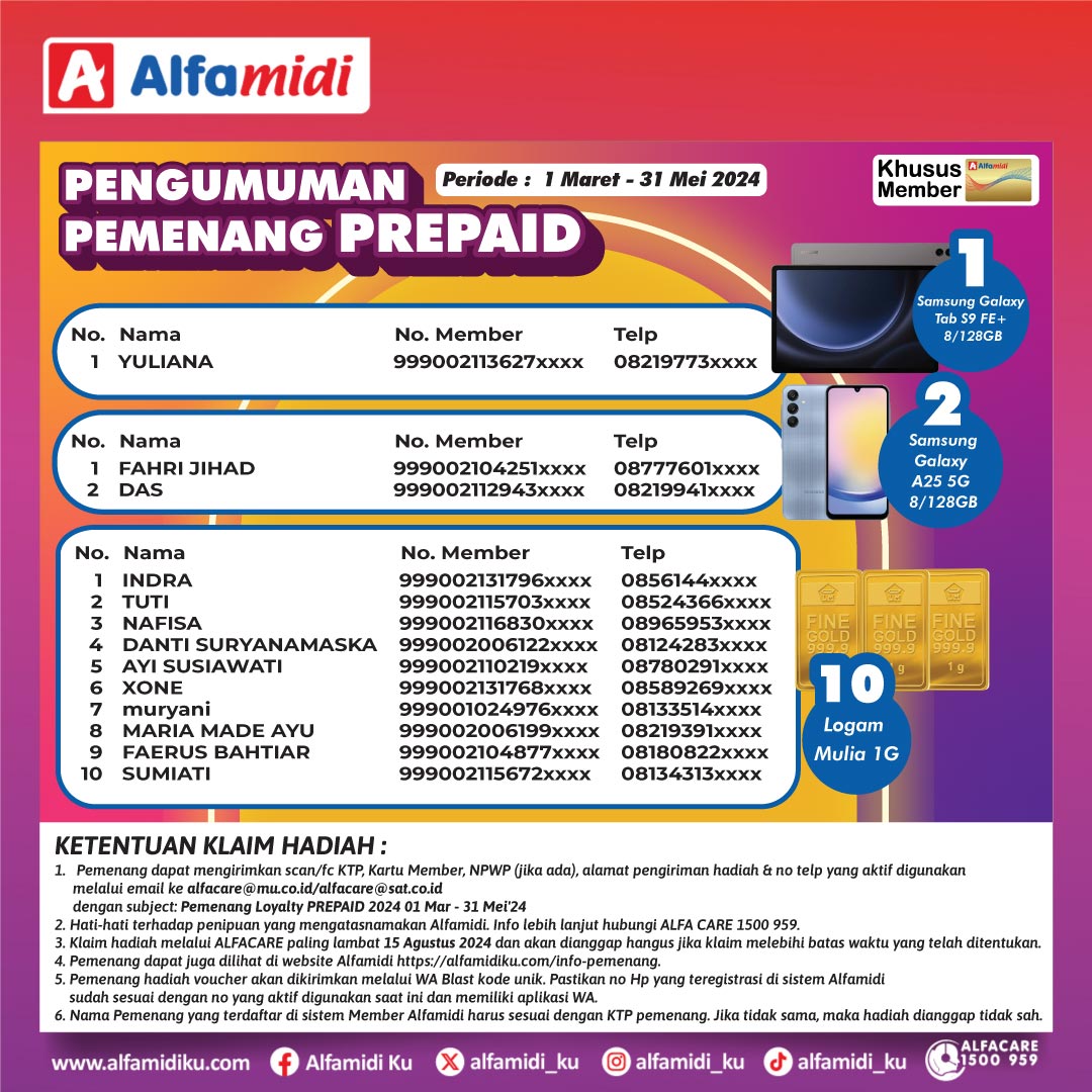 PEMENANG PAHALA, PARADE HADIAH ALFAMIDI LOYALTY MEMBER ALFAMIDI 2024